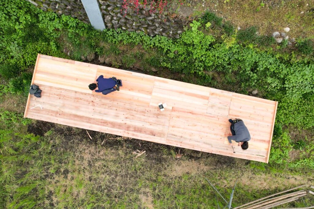 家にあった野地板をかき集めて、継ぎ接ぎの野地板。