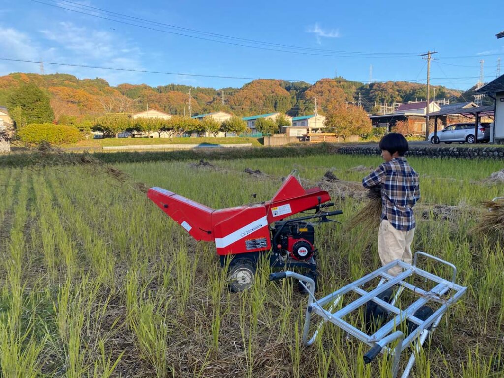 稲刈りの後は、藁を切り刻んで田んぼにバラ撒いて秋起こしをします。