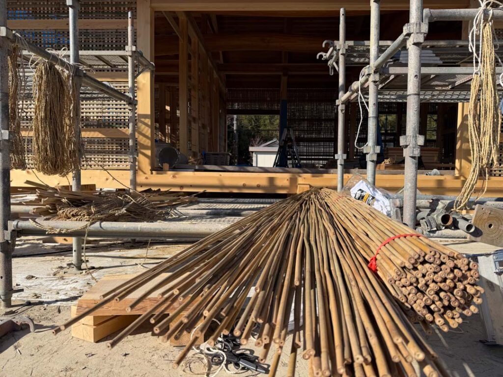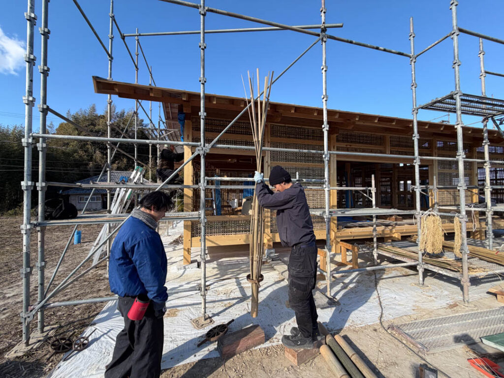 来年から大工に弟子入りする大学4年生の2人で、就職する前に竹小舞を経験したかったとのこと。