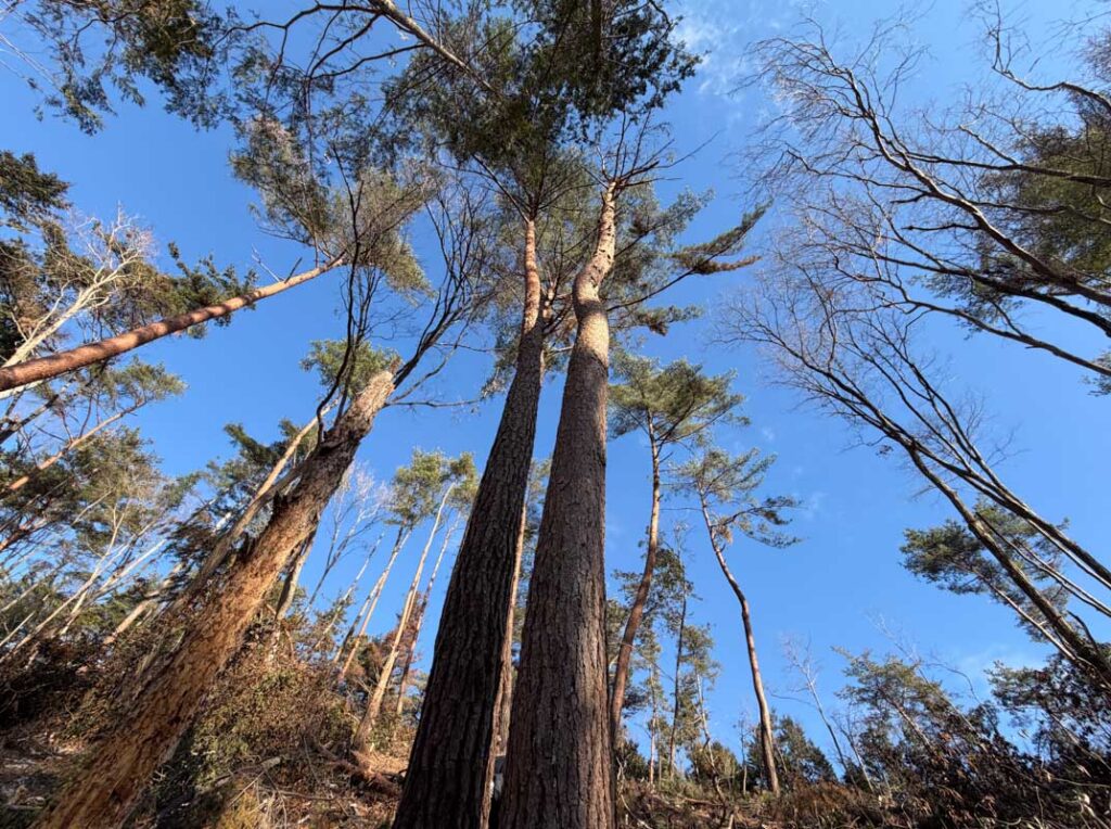 今は間伐されて周りに木々はありませんが、間伐前は植林された杉桧に囲まれていたので、光を求めて真っすぐ上に生えていきます。