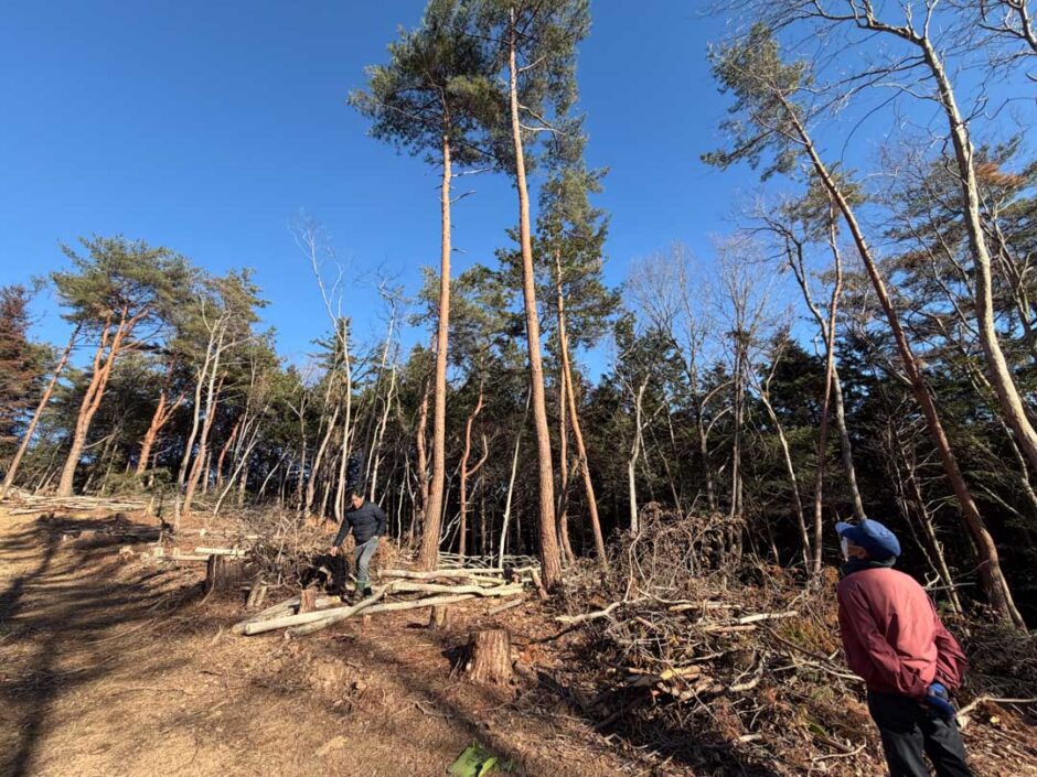 今回の山は、たまたま木こりさんの山でしたが、このあたりも松枯れはゆっくり進行しているそうです。