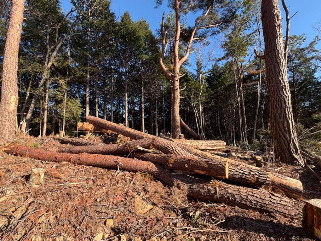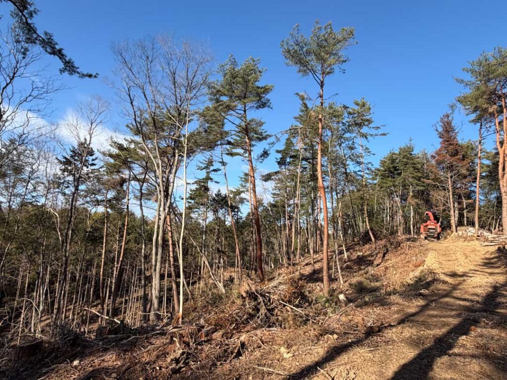 今回はちょうどうちの近所の松山の隣を間伐に入っているとの事で、間伐ついでに松を伐り出して頂けることになりました。