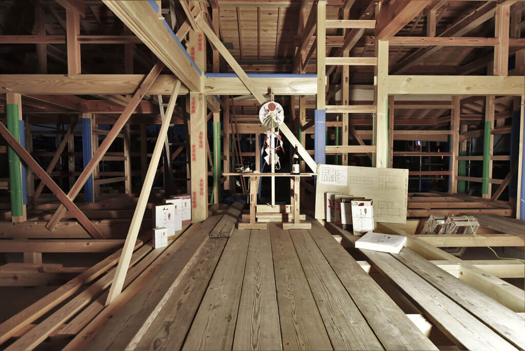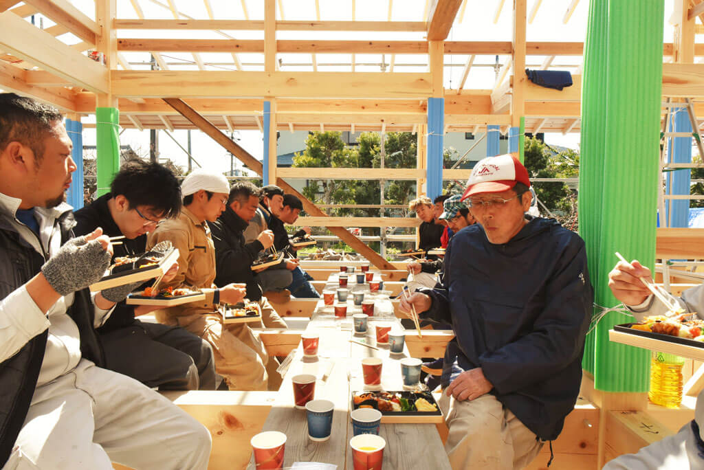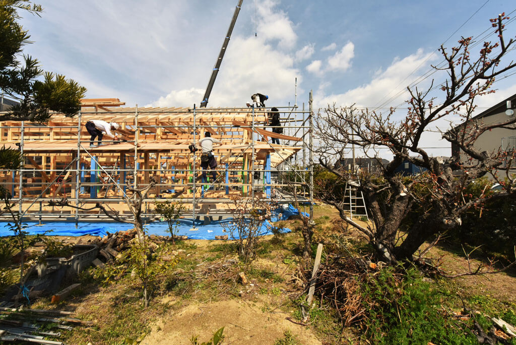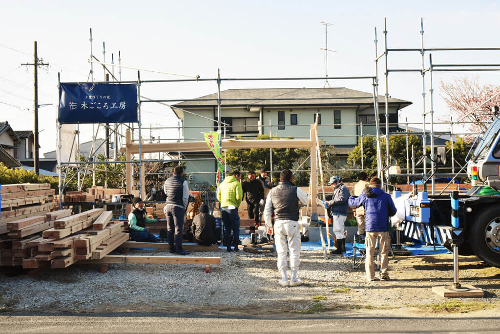 建主も、松村棟梁と一緒に棟木をおさめたり、職人の輪に入って楽しく会話をしたりと家作りにとって大切な時間になった思います。