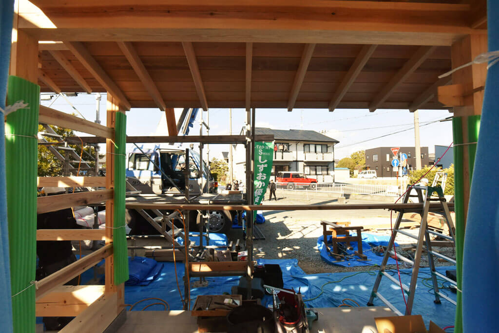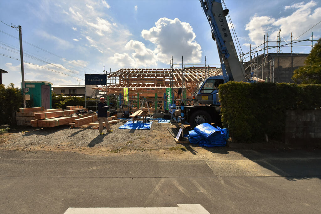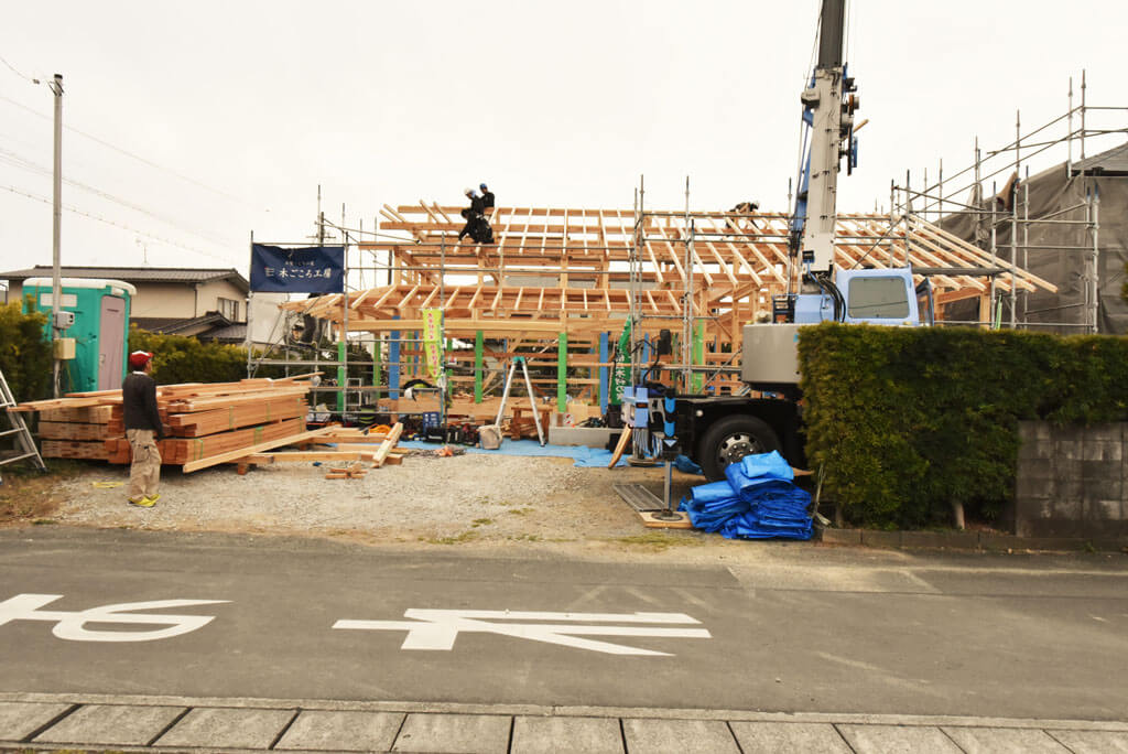 初めての静岡県での仕事、木の家ネットで繋がりのあった 木ごころ工房の松村さん のおかげで無事に上棟を迎えることが出来ました。